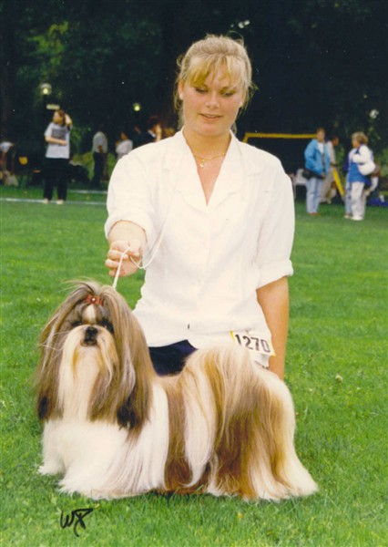 Thilda was one of the first successful offspring to the US imported "Bradley". With her true dark red/white colour. Impecable construction and marvelous attitude, Thilda easily climbed all the way to the top! Winning numerous breed, group and BIS placings! Thilda was Nilla's show dog and best friend and they followed eachother and created their success together. Starting by winning the Swedish Junior Handling finals 1989 all the way to veteran finals when she was 8 yrs!